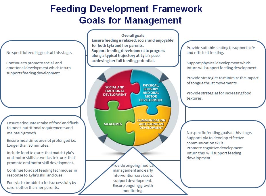 Note: the same or similar goals may be shared by more than one domain of the Feeding Development Framework. The priority of potential goals should be determined in discussion with Lyla’s parents.