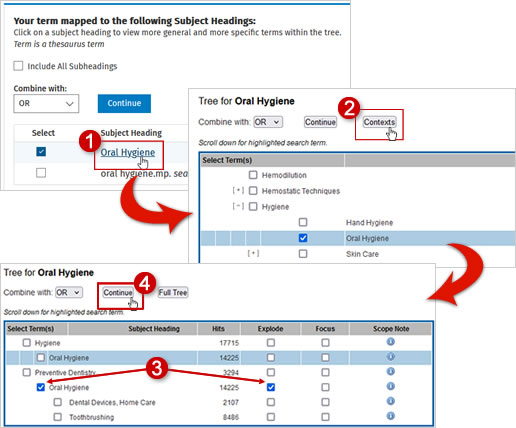 - After searching for Oral Hygiene select it from the Subject Headings result page.