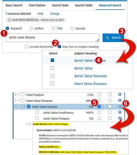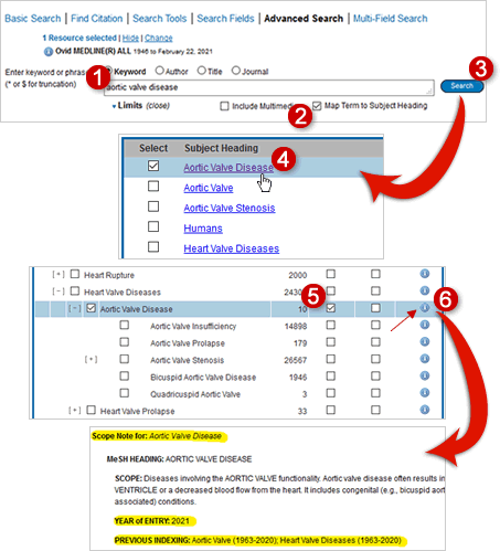 MeSH (Medical Subject Heading) terms are updated annually so it is important that you check the year of entry for each term to see if it is current and valid at the start year of your search.