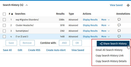 This feature is available for all registered users of Ovid, Ebsco, Cochrane Library, and PubMed databases.