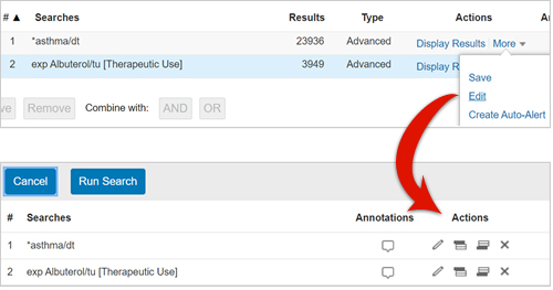 After doing your search go to Actions/More/Edit to open the Edit Search History feature.