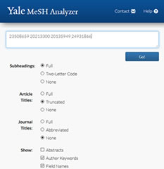 for ease of scanning. In addition to MeSH terms, author-assigned keywords, article titles, and abstracts can be included in the analysis grid.
