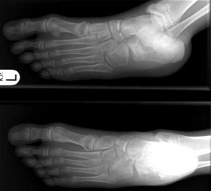 In young children, the presence of multiple ossification centres and the large proportion of unossified cartilage, can make the interpretation of plain radiographs difficult. If doubt exists regarding the appearance of a joint on plain films, a comparison